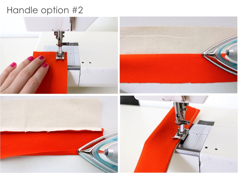 If you’re using lightweight fabrics, place right sides of the fabric together and sew down each side. Then use a safety pin or bodkin to pull the long tube-like handle right-side out. Iron out the wrinkled handle.