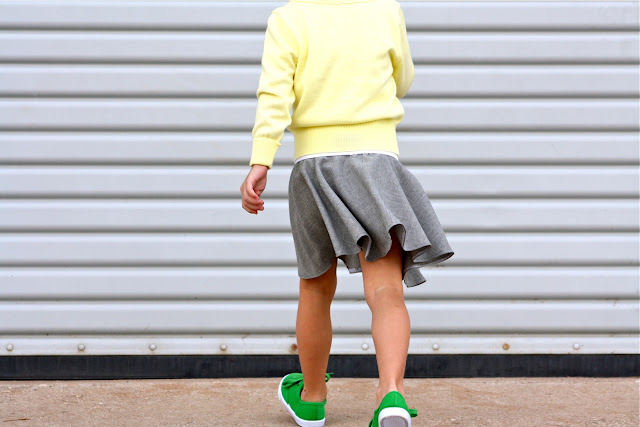 I actually made this a couple months ago when I shared my silky circle skirt with dyed elastic. This is the tweedish version; twirly yet warmer for the winter.